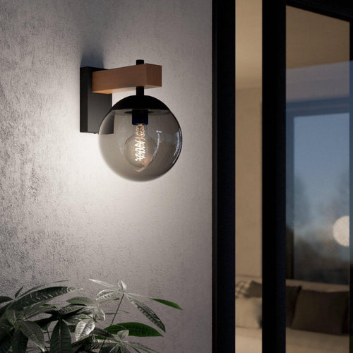 Eglo Bufalata IP44 Black & Wooden Outdoor Wall Light