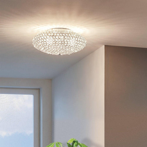 Eglo Clemente Chrome & Clear Glass Crystals Ceiling Flush - 45cm