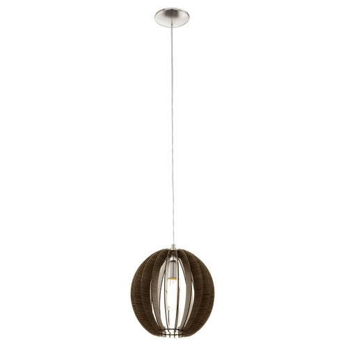 Eglo Cossano Round Dark Wood Slat Ceiling Pendant - 30cm