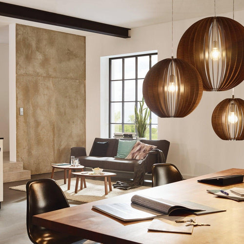 Eglo Cossano Round Dark Wood Slat Ceiling Pendant - 50cm