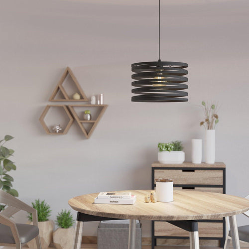 Eglo Cremella Round Black Metal Lampshade Ceiling Pendant - 37cm