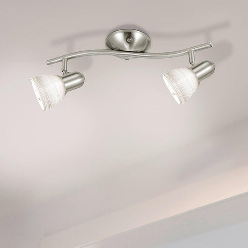 The DAKAR 1 ceiling light features a gently curved metal body in matte nickel combined with two adjustable spotlights. The spotlights have white glass lampshades decorated using a wiping technique and complement modern interior design styles. With its pivoting lamp heads, the classic ceiling spotlight works well in any space, whether the kitchen, the living room, the bedroom or the hallway. The product requires 2 x E14 lightbulbs that are not included.