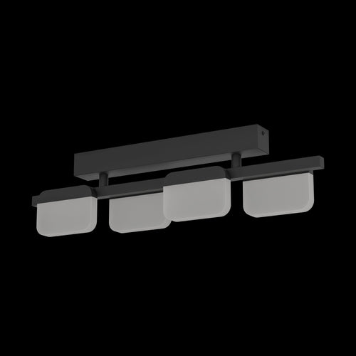 The ERVIDEL LED ceiling light features a black metal base attached to a long metal mount in the same colour. This design has four satin acrylic lights positioned on alternate sides. The integrated LEDs produce a pleasant warm white light that is dimmable using a coordinating rotary dimmer on the wall. The minimalist ceiling light works superbly in modern interiors and provides a distinctive lighting solution in the kitchen, living room, bedroom, dining room or hallway.