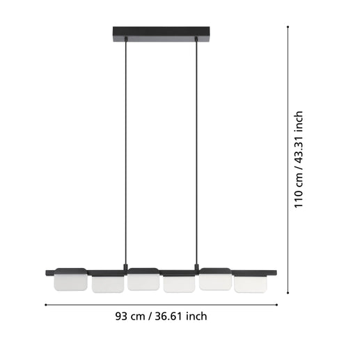 Eglo Ervidel LED Black & Acrylic 6 Light Ceiling Pendant