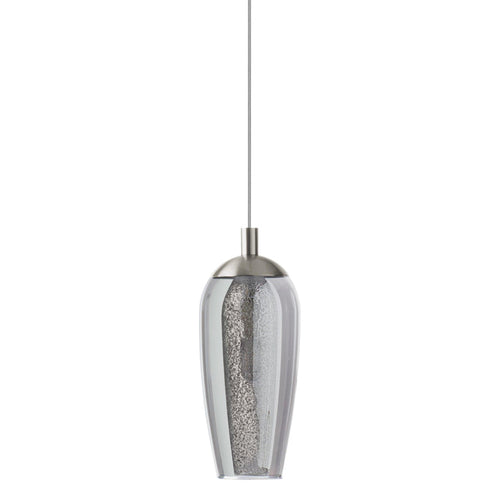 THE FARSALA LED pendant light has a lampshade made of smoked black glass surrounding a clear textured glass shade. The round canopy made from matte satin nickel metal beautifully complements the pendant light’s stylish look. This pendant light works particularly well in modern interiors and creates distinctive lighting in the living room or above the table in the dining room. The product includes a G9 LED lightbulb, which produces a pleasant warm white light.