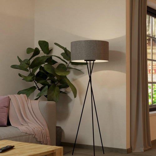 Eglo Fondachelli Black Tripod Floor Lamp - Grey Linen Shade