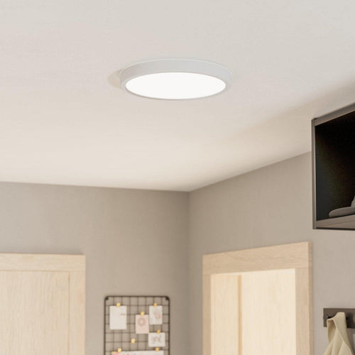 The FUEVA 5 surface-mounted LED light is made of white metal and, with a height of 28 mm, blends with almost any home living trend. The integrated LEDs are hidden by the white light diffuser and produce a pleasant warm white light. The product is dimmable using a coordinating rotary dimmer. Due to its slimline profile, this ceiling light works equally well as a wall light. The high-quality light has no visible screws on its housing, and the special ceiling bracket makes installation extremely straightforward. Featuring a classic design, the surface-mounted light can be used in any space, whether it’s the living room, bedroom, hallway or dining room.