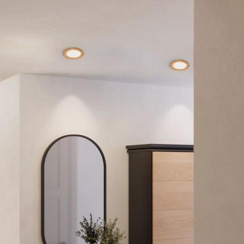 The FUEVA 5 recessed LED light is made of matte nickel metal and has a diameter of 117 mm. With a height of 26 mm, it works well in almost any living space and can even be installed in insulating material. The integrated LEDs are hidden by the white light diffuser and produce a pleasant warm white light. A recess of ∅ 105 mm is a requirement for installation. Featuring a classic design, this recessed spotlight can be used in any living space, whether in the kitchen, living room, bedroom, hallway or dining room.
