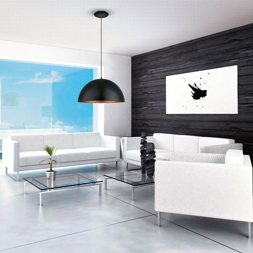 The GAETANO 1 pendant light has a round lampshade made from black steel with a copper-coloured inner finish. The product has a diameter of 53 cm. The pendant light complements industrial-style interiors and will create the right mood in the living room or dining room above the dining table. The lightbulb is not included. The product has an E27 lamp holder and requires 1 E27 lightbulb.