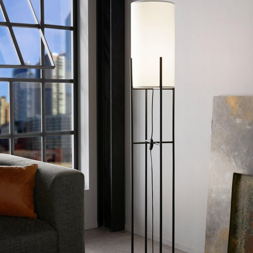 The GLASTONBURY floor lamp features a black metal frame and a white fabric lampshade. With its loft-chic style, the floor lamp blends seamlessly into modern interiors. The floor lamp can be switched on and off easily using the in-line switch. Whether in the bedroom, living room, dining room or hallway, the product provides cosy lighting for any interior.