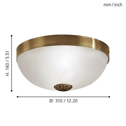Eglo Imperial Satin Glass & Brass Flush Ceiling Light