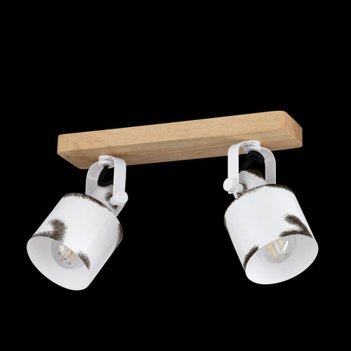 The KILBURN ceiling light is made from hardwood and has two adjustable spotlights made from white steel. Deliberately rusted in places, the wall-mounted spotlight blends seamlessly with cottage-style interiors. The two pivoting heads allow you to adjust the light to accentuate specific areas of the room, whether in the kitchen, living room, bedroom, hallway or dining room. The product has E27 lamp holders and requires 2 x E27 lightbulbs, which are not included.