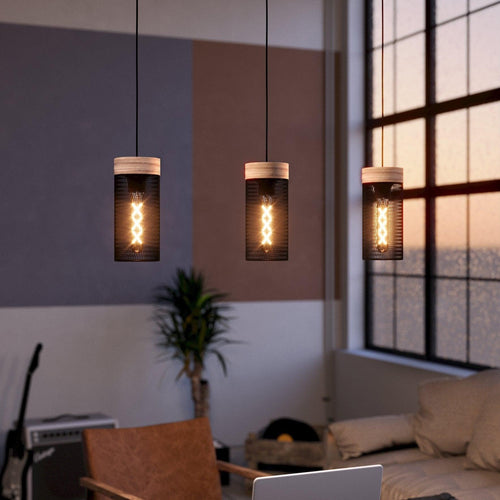 Eglo Kilnsdale 3 Light Wood & Black Metal Mesh Ceiling Pendant