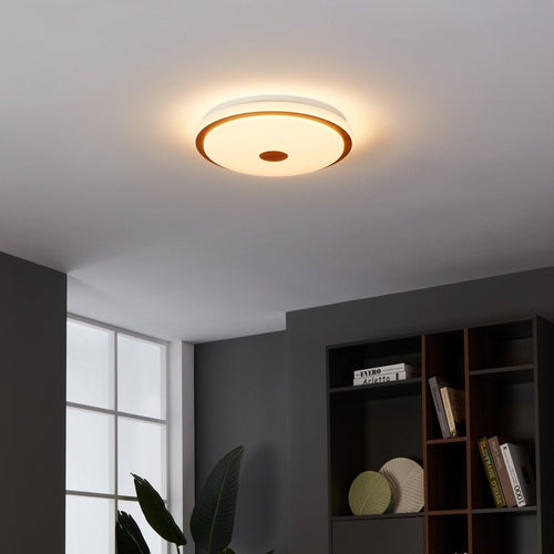 Eglo Lanciano 1 LED Wooden & White Round Ceiling Flush - 38cm