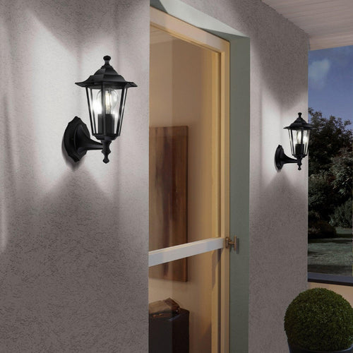 Eglo Laterna 4 Black Upright Lantern Outdoor Wall Light - IP44