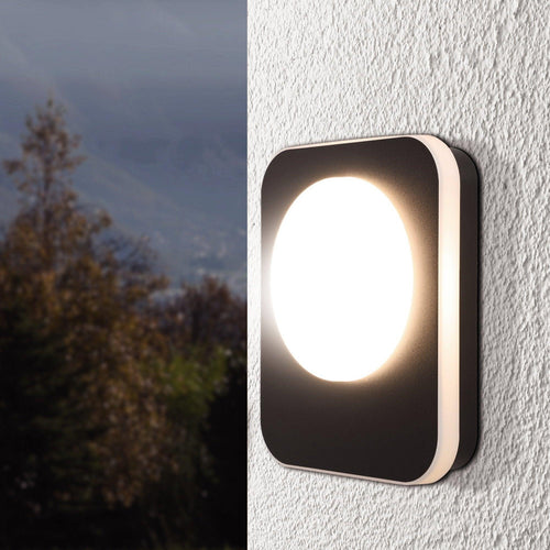 The MADRIZ exterior LED wall light features a black rectangular cast aluminium body with rounded corners. The integrated LEDs behind the round light panel and the white plastic light band around the sides produce a pleasant warm white light. In addition, the LED light strips provide harmonious indirect lighting. The wall light has IP44 protection against spray water and is suitable for outdoor use. Due to the classic design, the product blends into any modern outdoor space and is the perfect exterior light for house entrances, terraces or the balcony.