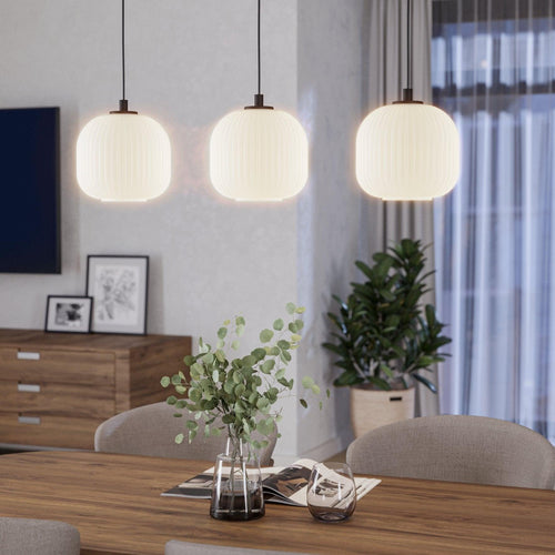 Eglo Mantunalle 3 Light White Ribbed Glass Shade Bar Pendant