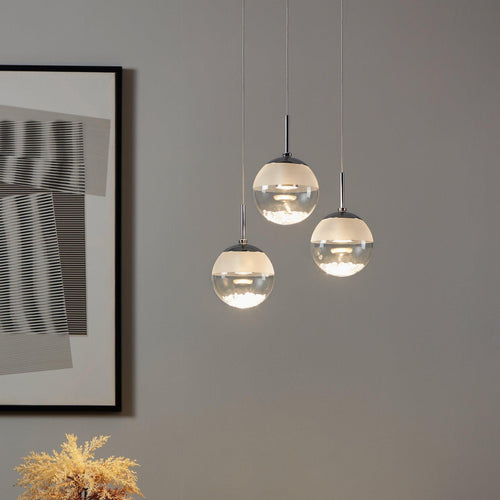 Eglo Montefio 1 3 Light LED Chrome Pendant -Spherical Glass Shades