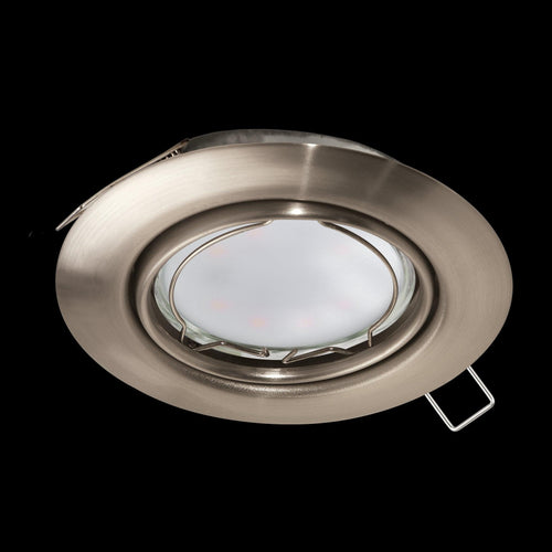 This fitted luminaire from the series PENETO is made of satin nickel steel. It has protective insulation and is equipped with an GU10-LED-lamp for a warm white light.