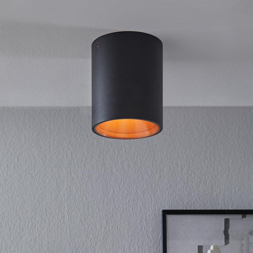 The POLASSO ceiling light features a black aluminium cylinder with a copper-coloured inner surface. The integrated LEDs produce a pleasant warm white light. The minimalist design complements modern interiors, providing a stylish lighting solution for any space, whether in the kitchen, living room, bedroom or hallway.