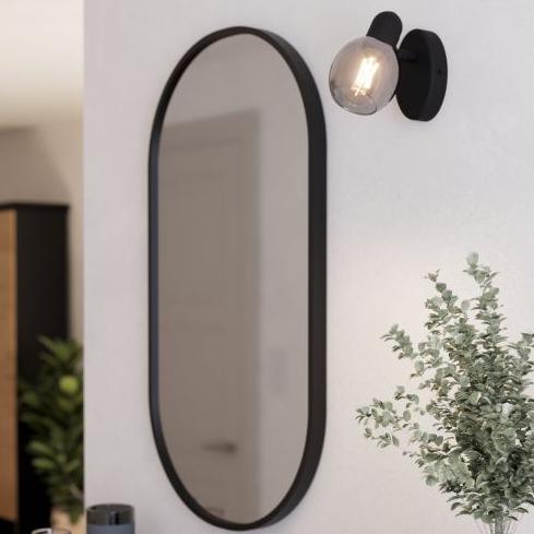 The POLLICA wall and ceiling light feature a round black metal body and an adjustable spotlight made from smoked black glass. The wall-mounted spotlight blends seamlessly into modern interiors and is perfect as a ceiling spotlight. The pivoting head allows you to adjust the light to accentuate any area, whether in the kitchen, living room, bedroom, hallway or dining room. The pictured filament lightbulb is not included. The product has an E14 lamp holder and requires an E14 lightbulb.