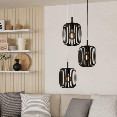 Eglo Romazzina 3 Light Black Metal Caged Ceiling Pendant
