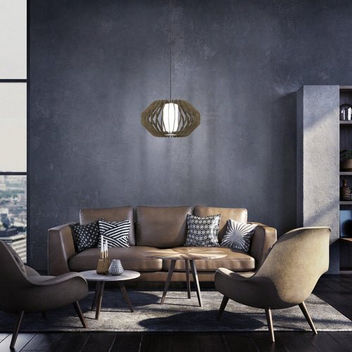 Eglo Rusticaria Wood Segments & White Glass Ceiling Pendant