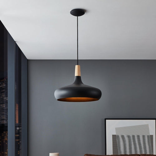 Eglo Sabinar Black Metal & Wood Lampshade Pendant - 40cm