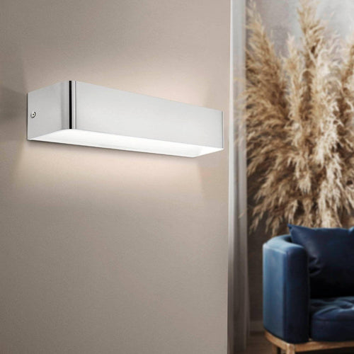 The SANIA 4 LED wall light has an elongated cube-shaped body in an aluminium matte nickel finish with a white inner surface. The integrated LEDs cast an indirect warm white light with the up and down design. The minimalist wall light has a modern look that can be integrated into various interior styles, providing cosy lighting in the living room, dining room, kitchen or hallways.