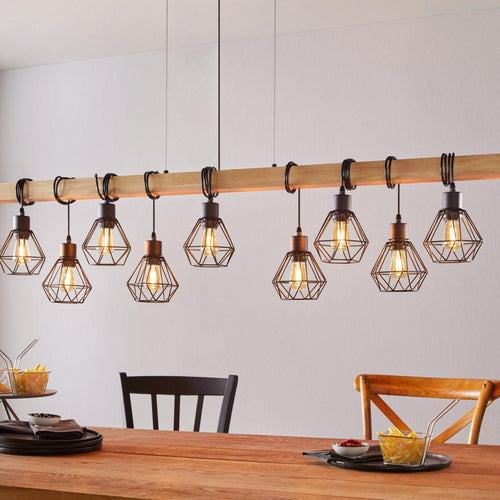 Eglo Townshend 5 Wooden Adjustable 9 Light Bar Ceiling Pendant