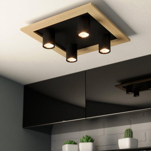 Eglo Valcasotto 1 Black & Wood 4 Light Square Ceiling Flush