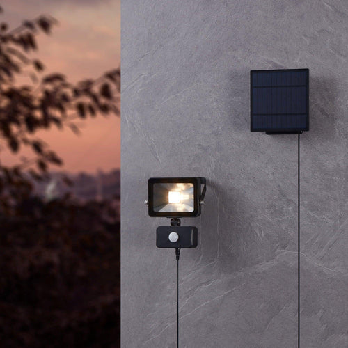 The VILLAGRAPPA is an LED spotlight made of a black luminous body and features a solar panel and a Li-ion battery. The separate solar module on the 3-meter-long cable enables the flexible choice of attachment location to operate the spotlight with sufficient sunlight. For example, you can place the solar light in a shady place and position the solar panel given sunlight to benefit from the advantages of solar energy. The steeler can be flexibly mounted anywhere in your garden, over the bracket or the ground spike. The LEDs of the outer light provide pleasant warm white light. In addition, the light is equipped with a movement sensor and switches on the light automatically, shining at 800 lumens for 60 seconds and then continuing to shine at 40 lumens. The sensor also acts as a deterrent to uninvited guests, offering added security to your home. The spotlight is perfect for outdoor use thanks to its IP44 protection against splashes of water. The integrated twilight sensor measures the ambient brightness and only switches the light on if necessary. The timeless design of the sensor light fits into any outdoor area and offers safe and reliable lighting.