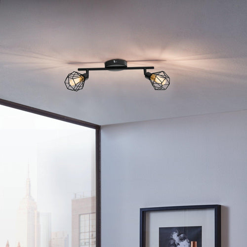 Eglo Zapata 1 Black Wire Caged 2 Light Spotlight