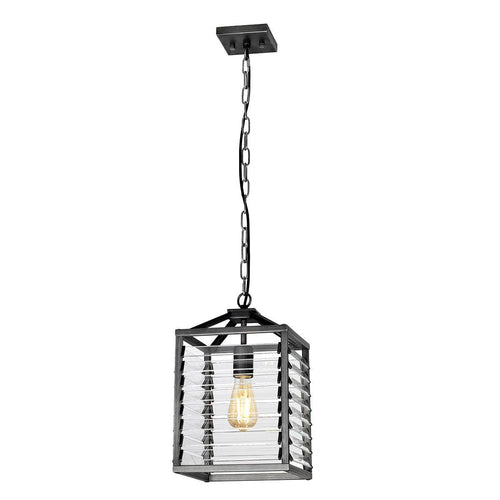 Elstead Louvre 1 Light Gunmetal Pendant - Clear Glass Slats