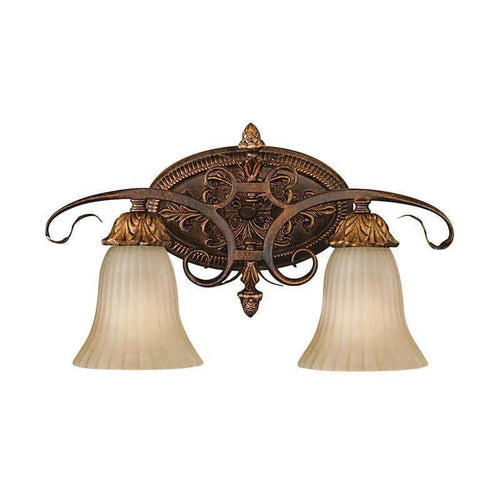 This Feiss Sonoma Valley Aged Tortoise Shell 2 Light Wall Light by Elstead Lighting is a beautiful light. The cream-ridged glass shades are held in place by the delicately detailed sconces, and the curling, curving arms with some lovely leaf detail at each end, bringing to mind the vineyards of Sonoma Valley for which this light is named.