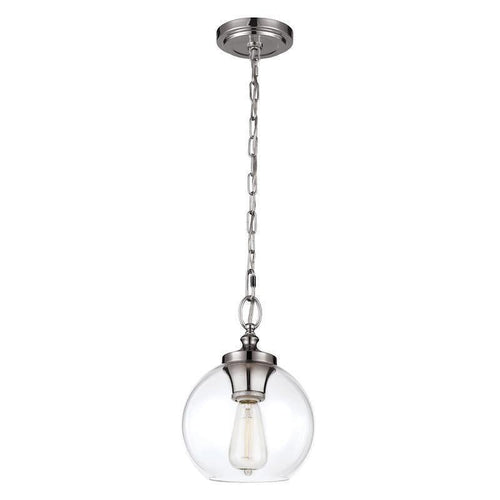 This Feiss Tabby Polished Nickel Finish Small Pendant Ceiling Light from Elstead Lighting is a traditional pendant with a contemporary feel, thanks to the elegant spherical shade in clear glass, exposing the body of the lamp which is finished in polished nickel, resulting in a lamp which gives you a lot of light and a very up-to-date modern design.