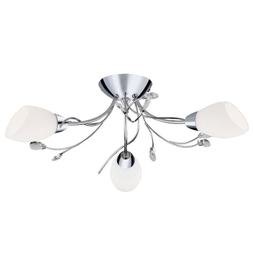 Gardenia 3 Lt Chrome & Crystal Ceiling Flush - Opal Glass Shades