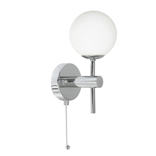 Global 1 Lt Opal Glass Chrome Bathroom Wall Light - Pull Switch