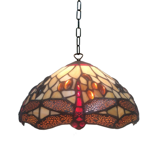 Possibly the most iconic of all the Tiffany Lighting reproductions, the Dragonfly oozes early 20th-century American style. Beige, gold and orange art glass are combined with rich red jewels to create a stunning Tiffany Ceiling Pendant. With the light at the right angle, the eyes of the dragonfly will glow amber against the red of the body. The Golden Dragonfly Tiffany range includes a floor lamp and an extensive choice of ceiling lights and table lamps, all in the same beautiful design.