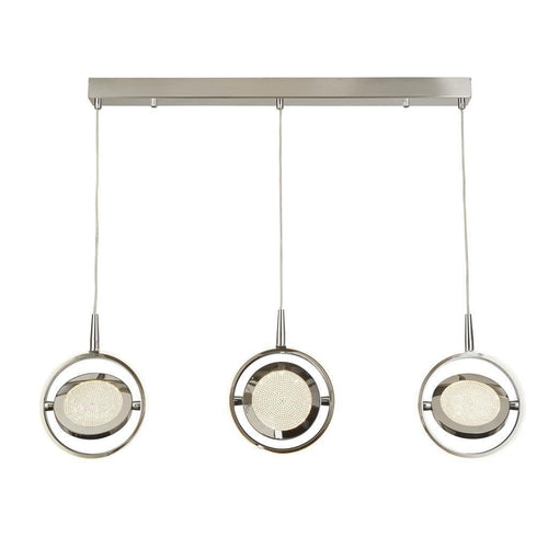 Gyroscope 3 Light LED Chrome & Crystal Ring Bar Ceiling Pendant