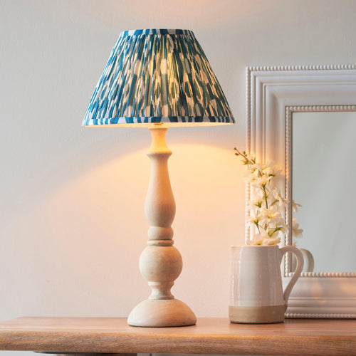 Hidcote Wooden Table Lamp & Ikat 30cm Marlin Blue Shade
