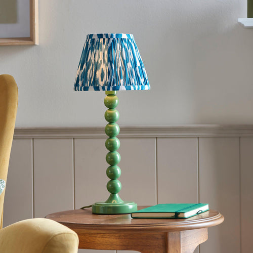 Higgledy Green Table Lamp & Ikat 20cm Marlin Blue Shade