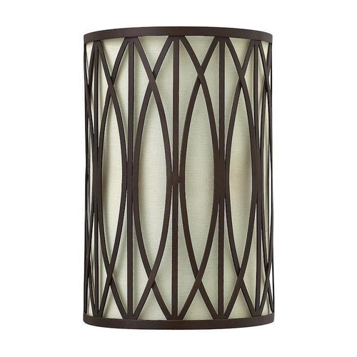 The Hinkley Walden Bronze Wall Light features an elegant design with a sophisticated geometric pattern, making it a perfect addition to any living room or bedroom. Its sleek, cylindrical shape is complemented by a rich, dark finish that adds a touch of modern elegance to your space. This versatile fixture is designed to be used with LED lamp bulbs, ensuring energy efficiency and long-lasting illumination. Its soft, ambient glow creates a warm and inviting atmosphere, enhancing the aesthetic appeal of your home while providing functional lighting.