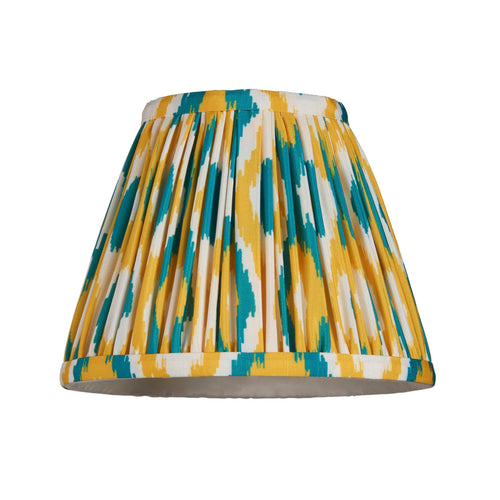 Introducing our stunning 16cm tapered shade with a clip gimbal, designed to accommodate golf or candle bulbs. This unique shade features a captivating Ikat pattern in vibrant yellow and jade, complemented by elegant taped edge detailing and a sleek plain inner lining. Perfect for enhancing the ambiance of your bedroom, this shade pairs beautifully with our exquisite range of decorative table lamps, wall lights, rechargeable fixtures, and chandeliers. Enjoy a fast and secure delivery service, along with easy returns, ensuring a hassle-free shopping experience. Shop with confidence knowing that your online safety is our top priority! Illuminate your space with style today!