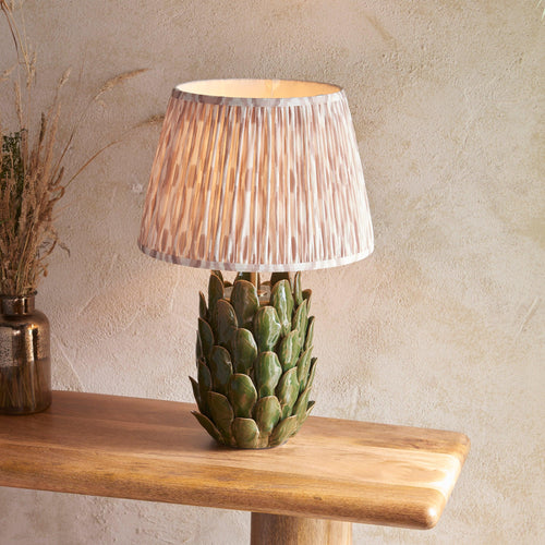 Elevate your living space with our exquisite ceramic table light, inspired by the elegant opening leaves of an artichoke. The rich dark olive reactive glaze adds a touch of luxury, making it a stunning addition to any room. Featuring a stylish brushed aged brass B22 lamp holder and a chic black braided fabric flex, this piece is not only beautiful but also functional. Perfect for creating a cozy reading nook in your living room, this table light pairs beautifully with our natural 35cm Ikat shade, completing the look with sophistication and charm. Shop with confidence knowing that we offer secure delivery, easy returns, and a safe online shopping experience. Illuminate your home with style and ease today!