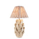 Elevate your dining room ambiance with our exquisite handmade ceramic table light, inspired by the elegant shapes of palm and fern leaves. This stunning piece features a luxurious ivory crackle glaze that adds a touch of sophistication to any space. The lamp is beautifully complemented by a brushed aged brass B22 lamp holder and a stylish grey braided fabric flex, ensuring both aesthetic appeal and durability. To complete the look, we've paired it with our natural 30cm Ikat shade, creating a warm and inviting atmosphere perfect for reading or enjoying intimate dinners. Shop with confidence knowing that we prioritize your satisfaction with secure delivery, easy returns, and a safe online shopping experience. Illuminate your home with this captivating table light and transform your dining room into a haven of style and comfort.