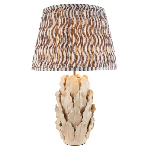 Elevate your living space with our exquisite handmade ceramic table light, inspired by the elegant shapes of palm and fern leaves. The stunning ivory crackle glaze adds a touch of luxury, making it the perfect addition to your home decor. Featuring a beautifully brushed aged brass B22 lamp holder and a chic grey braided fabric flex, this table light is not only stylish but also functional. Ideal for creating a cozy reading nook in your living room, this piece pairs perfectly with our sophisticated 35cm Ripple shade in pearl grey, completing the look with grace and charm. Shop with confidence knowing that we offer secure delivery and hassle-free returns, ensuring a safe online shopping experience. Illuminate your home with this stunning table light and enjoy the perfect ambiance for your reading moments!