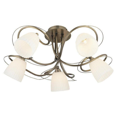 Leke Antique Brass Semi Flush Ceiling Light 6259/5 AB