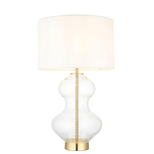 Linear Brass & Clear Glass Touch Table Lamp - White Shade