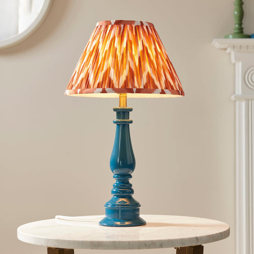 Myrtle Blue Table Lamp & Zigzag 30cm Apricot Orange Shade